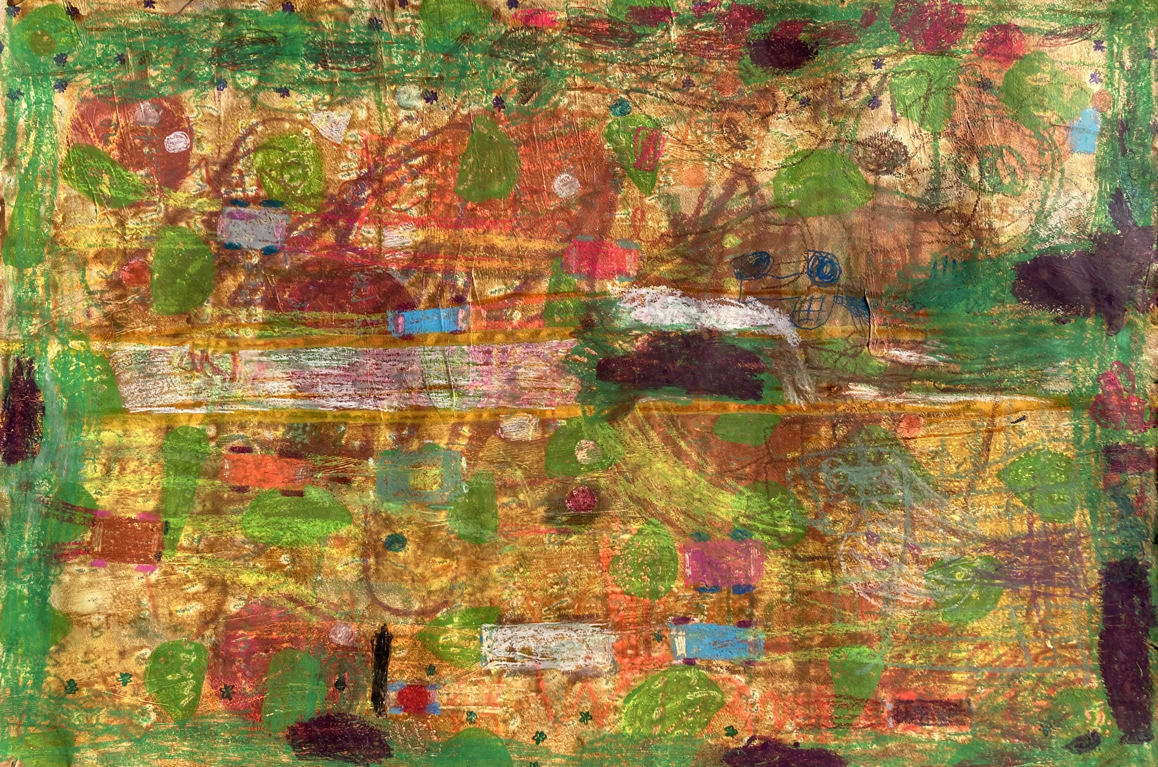 oil pastel, china marker, mr sketch marker & watercolor on paper